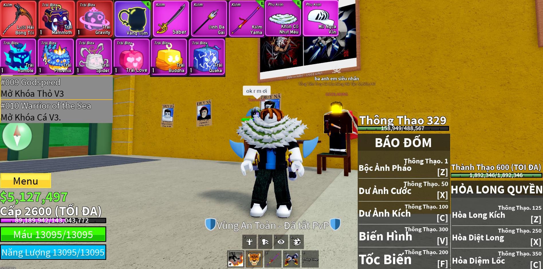 Trái ác quỷTrái Mammoth,Trái Sound,Trái Gravity,Trái Love,Trái Quake,trái spirder