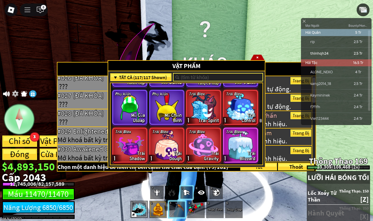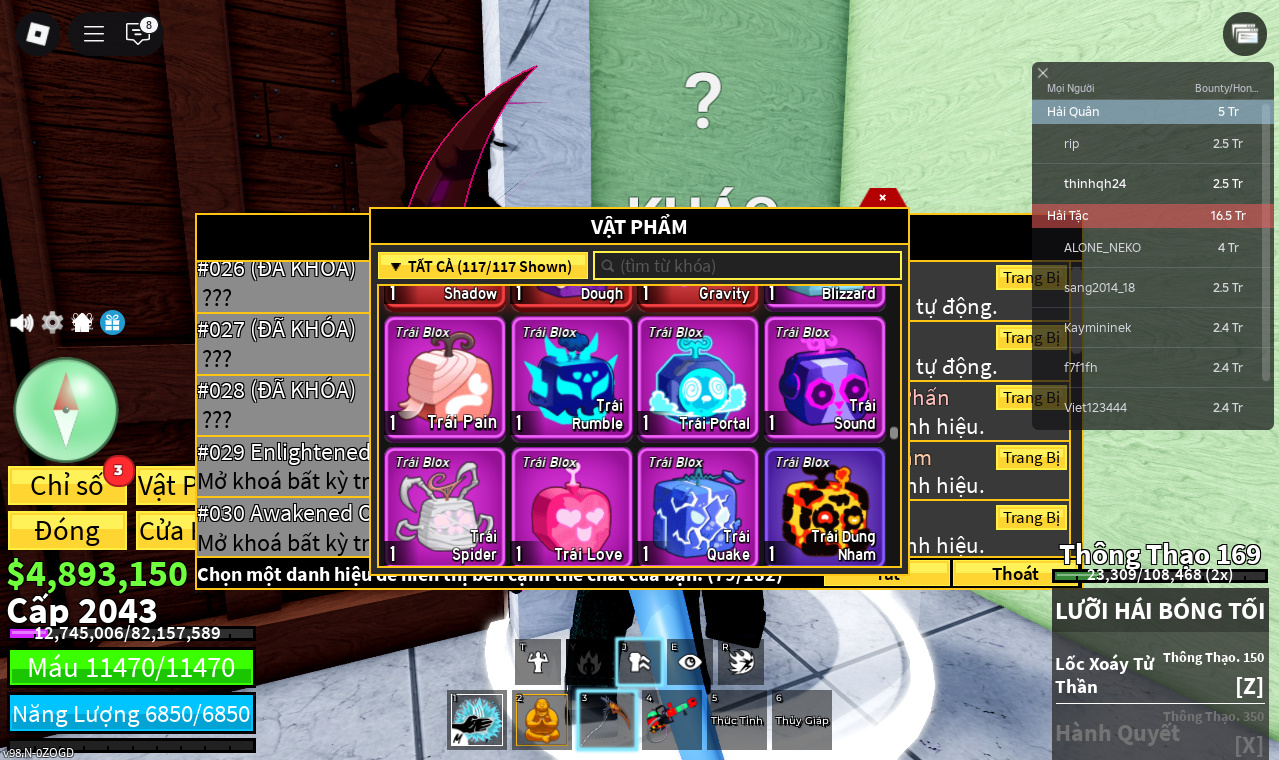 Trái ác quỷTrái Control,Trái Gravity,Trái Shadow,Trái Spirit,Trái Love,Trái Dough,Trái Quake,trái spirder