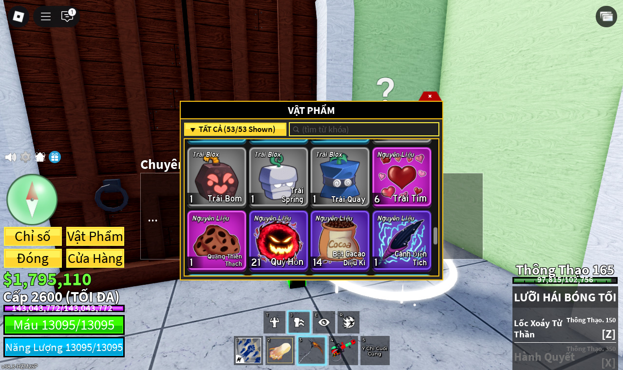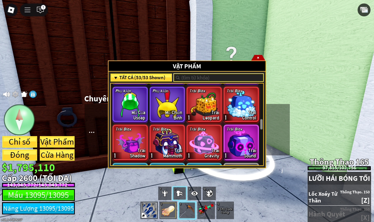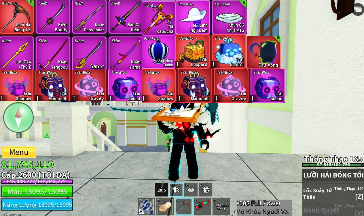 Trái ác quỷCó trong vật phẩm,Trái Mammoth,Trái Control,Trái Sound,Trái Gravity,Trái Leopard,Trái Shadow