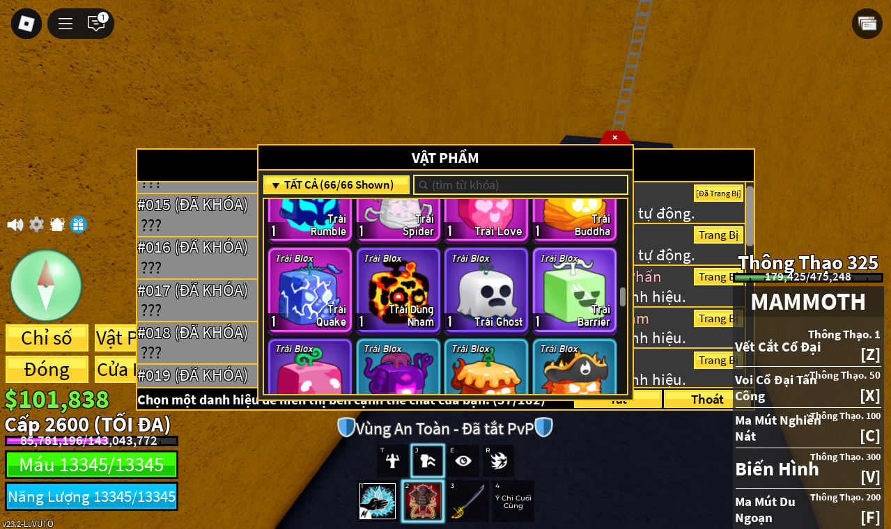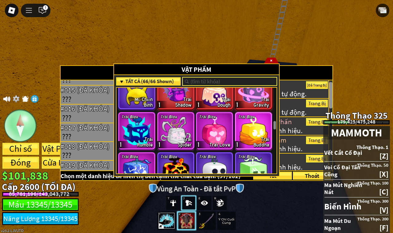 Trái ác quỷCó trong vật phẩm,Trái Gravity,Trái Love,Trái Dough,trái spirder,trái rumble