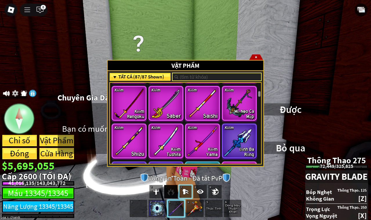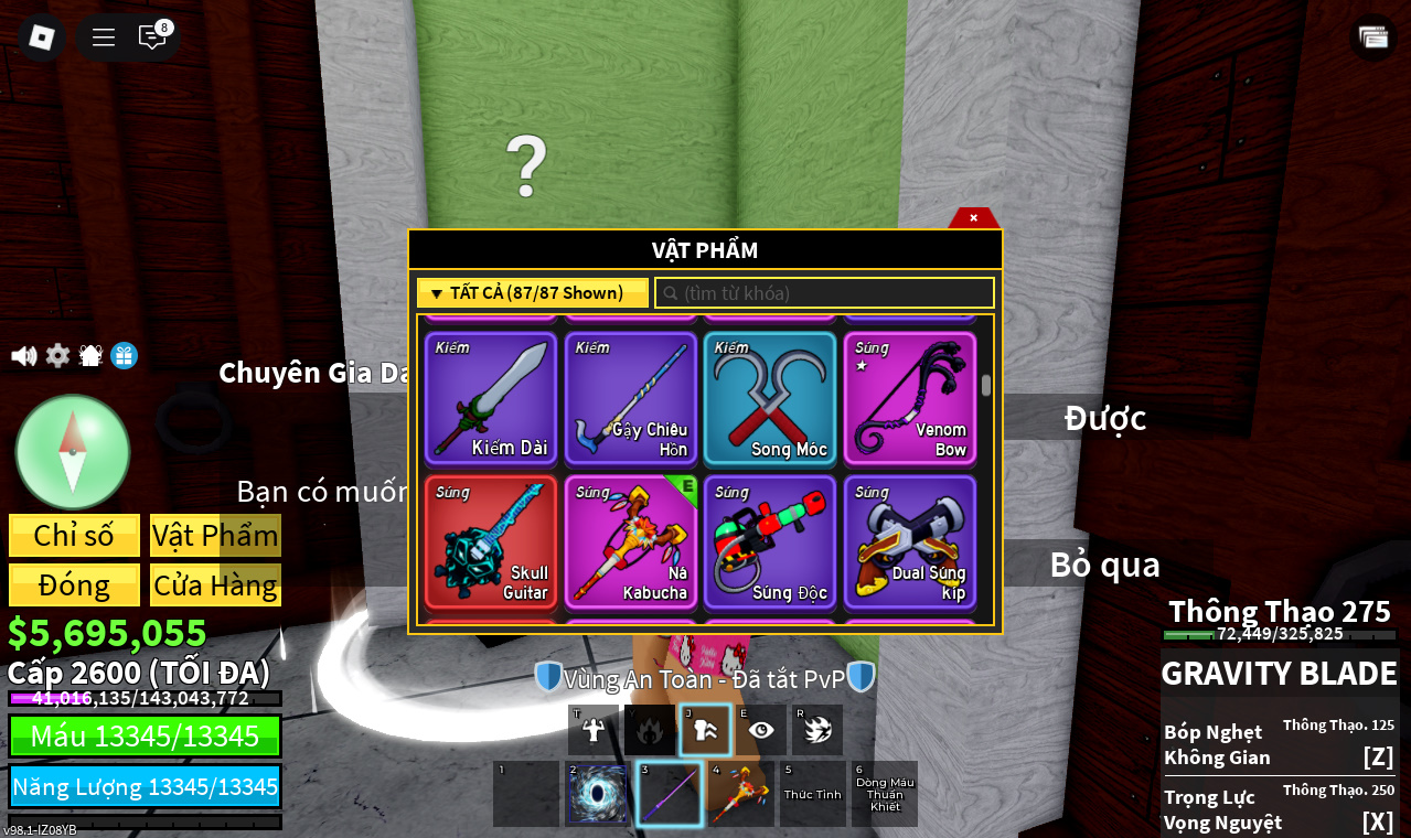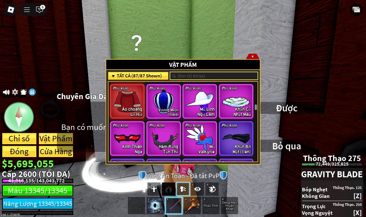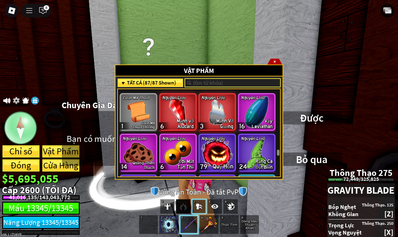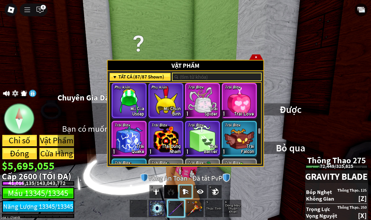 Trái ác quỷCó trong vật phẩm,Trái ác quỷ vĩnh viễn,Trái Love,Trái Quake,trái spirder,trái portal vv
