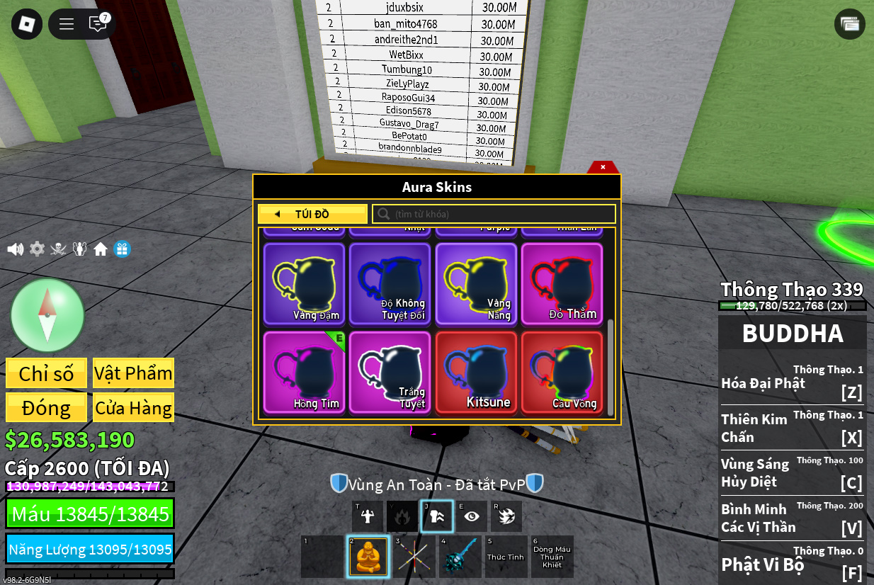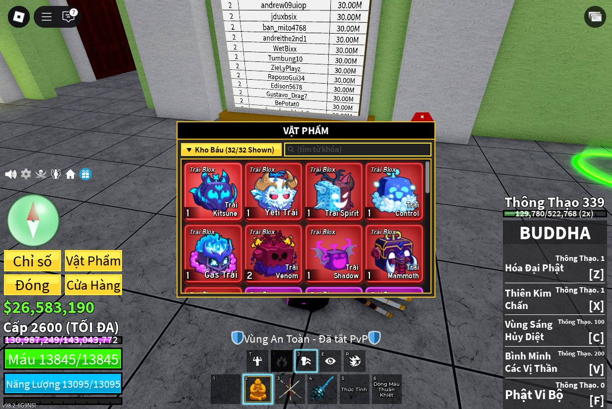 Trái ác quỷCó trong vật phẩm,Trái Kitsune,Trái Mammoth,Trái Venom,Trái Gas,Trái Control,Trái Gravity,Trái Shadow,Trái Spirit,trái yeti,trái quay vv,trái rocket vv