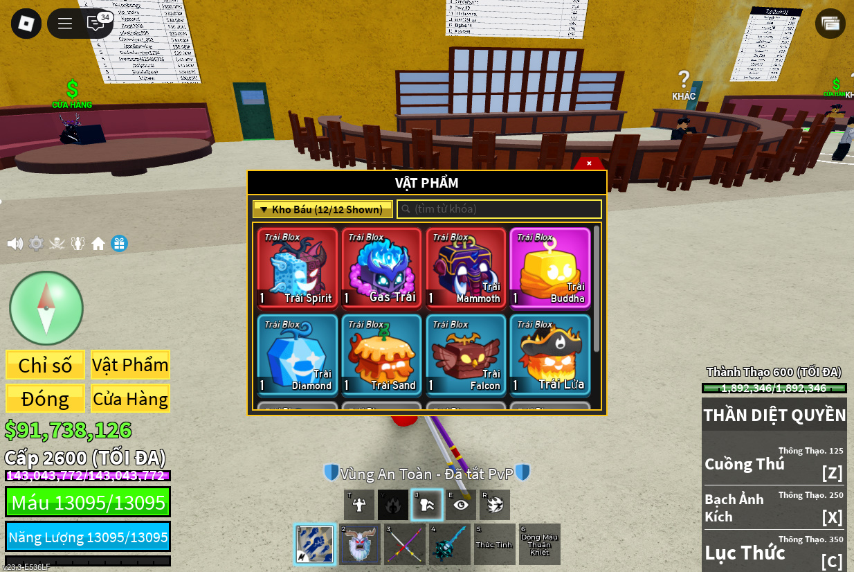 Trái ác quỷCó trong vật phẩm,Trái Mammoth,Trái Gas,Trái Spirit