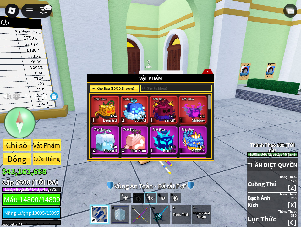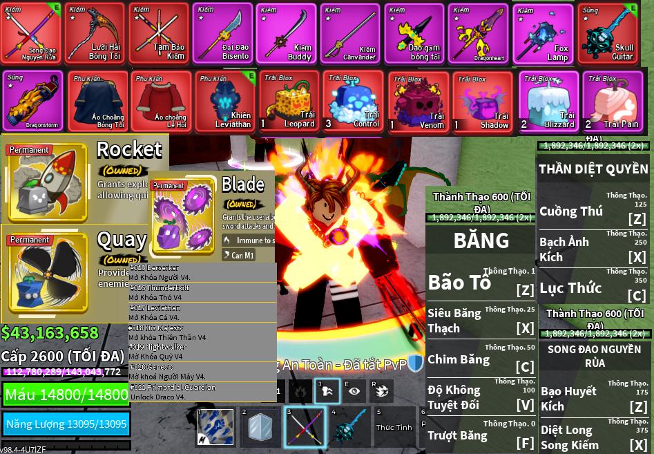 Trái ác quỷCó trong vật phẩm,Trái Venom,Trái Control,Trái Leopard,Trái Shadow,trái pain,trái quay vv,trái blade vv,trái rocket vv