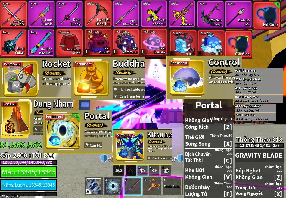 Trái ác quỷCó trong vật phẩm,Trái ác quỷ vĩnh viễn,Trái Mammoth,Trái Venom,Trái Control,Trái Gravity,trái rocket vv,trái phật vv,trái dung nham vv,trái control vv,trái portal vv