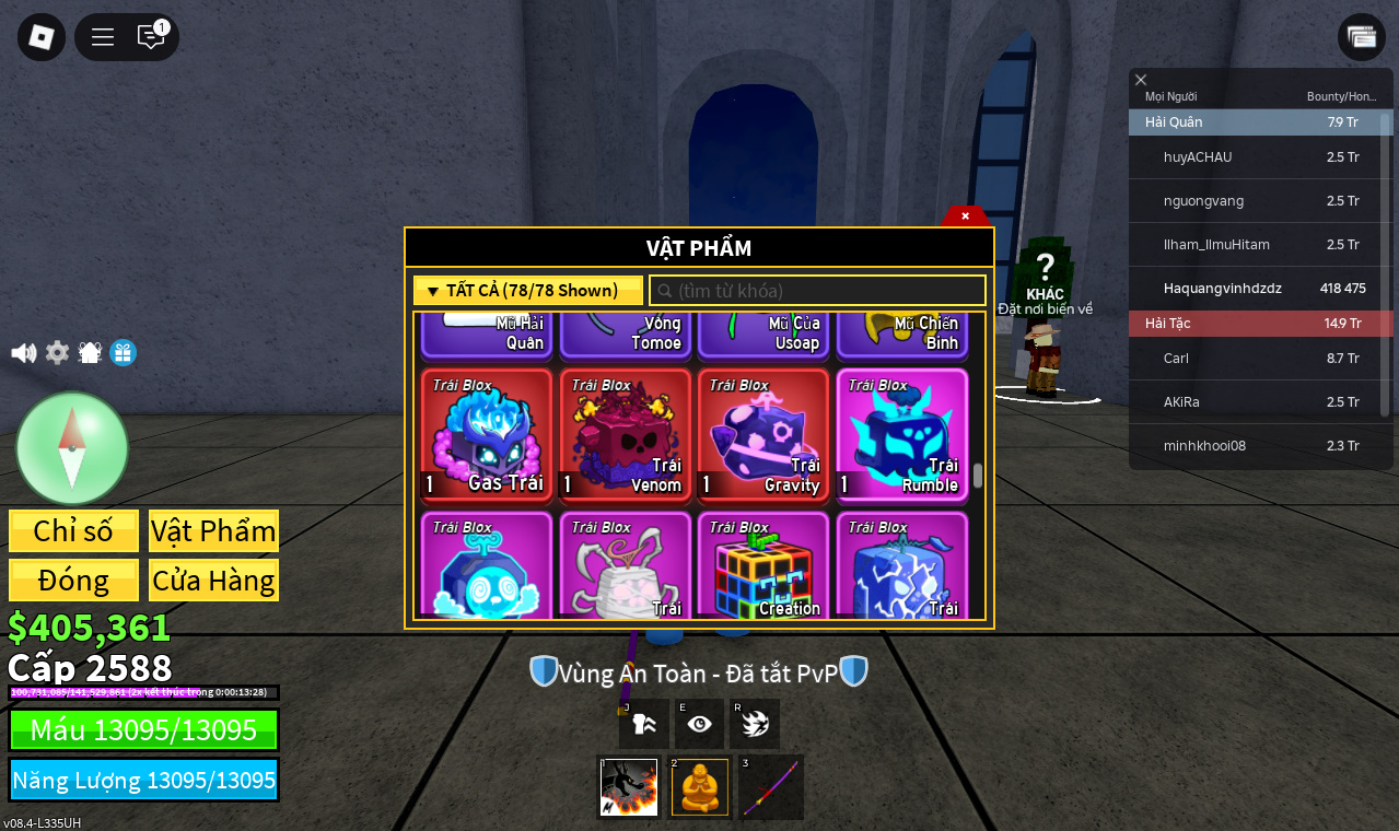 Trái ác quỷCó trong vật phẩm,Trái Venom,Trái Gas,Trái Gravity,trái rumble