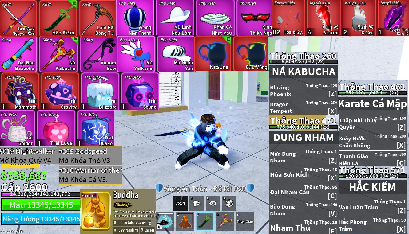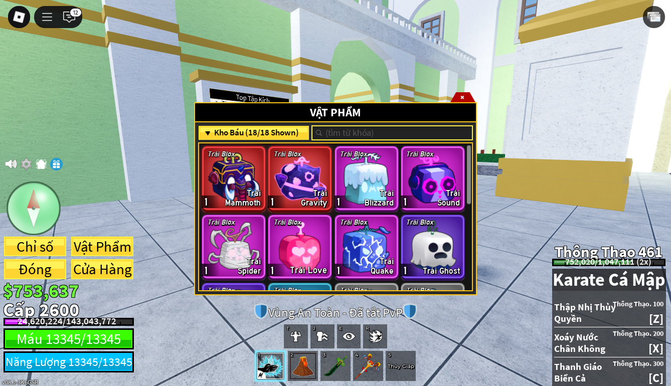 Trái ác quỷCó trong vật phẩm,Trái ác quỷ vĩnh viễn,Trái Mammoth,Trái Sound,Trái Gravity,Trái Love,Trái Quake,trái spirder