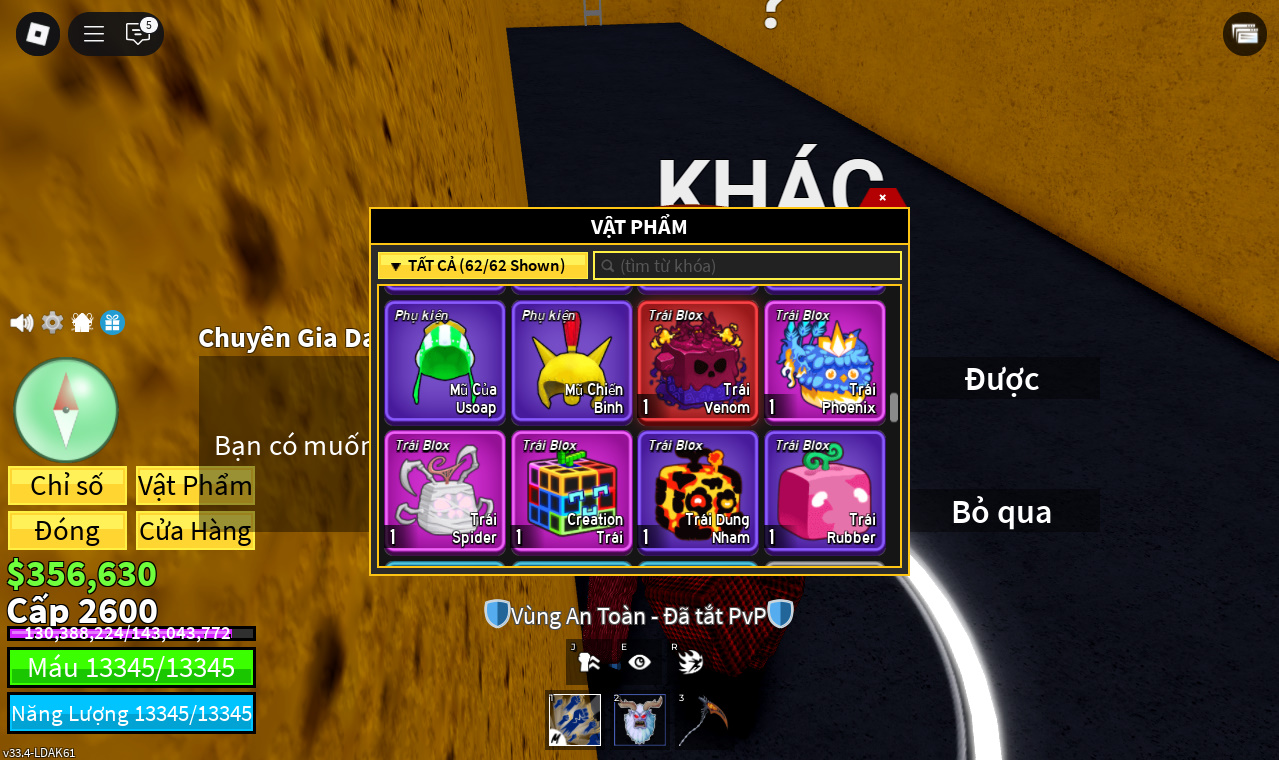 Trái ác quỷCó trong vật phẩm,Trái Venom,Trái Spirit,trái phoenix,trái creation Tường
