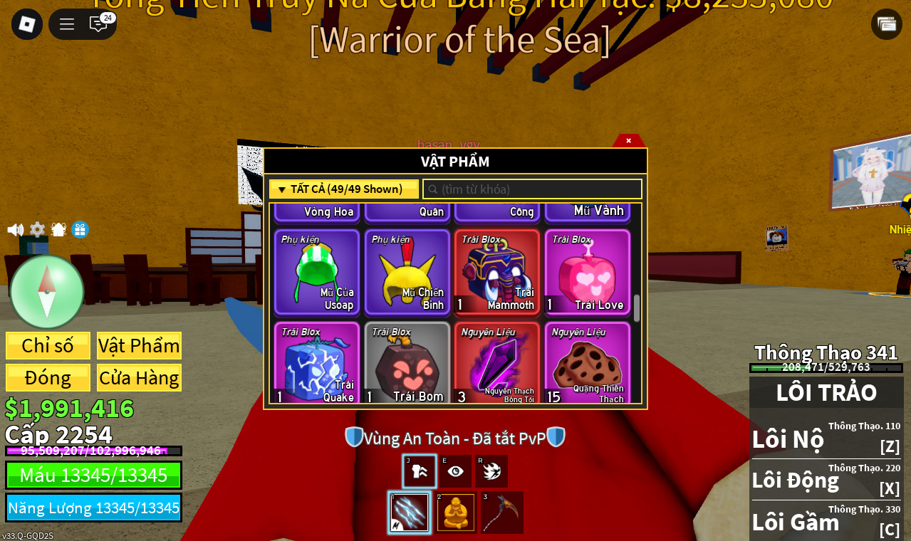 Trái ác quỷCó trong vật phẩm,Trái Mammoth,Trái Love,Trái Quake