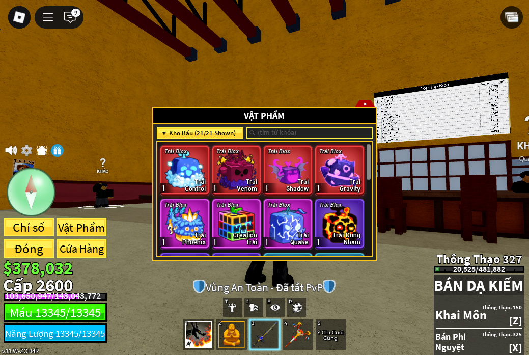 Trái ác quỷCó trong vật phẩm,Trái Venom,Trái Control,Trái Gravity,Trái Shadow