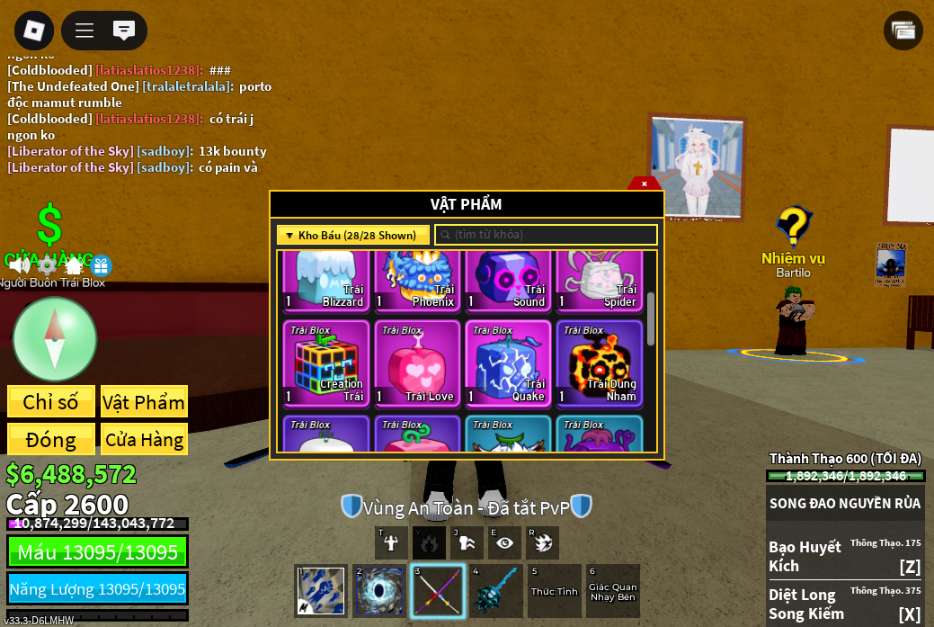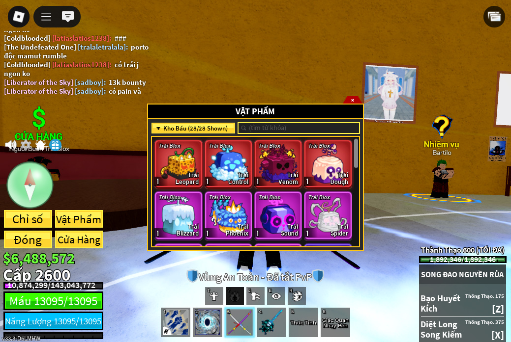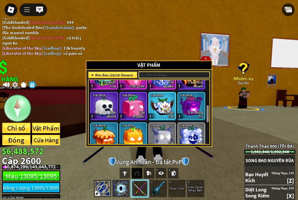 Trái ác quỷCó trong vật phẩm,Trái Venom,Trái Love,Trái Dough,Trái Quake,trái phoenix