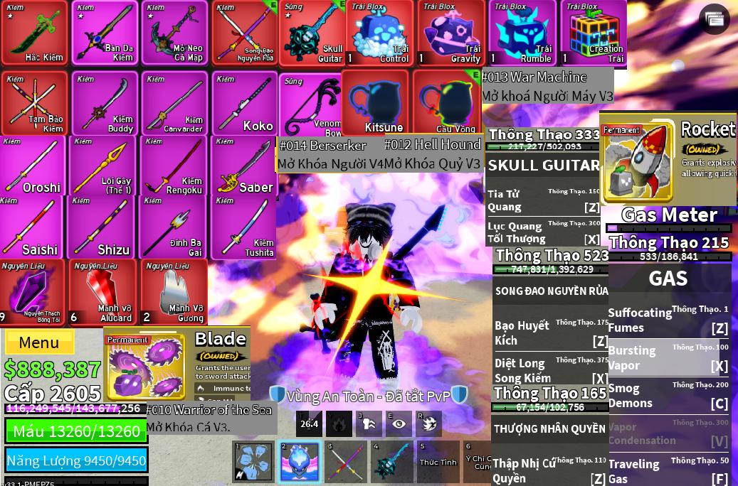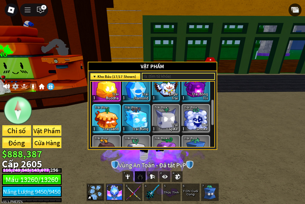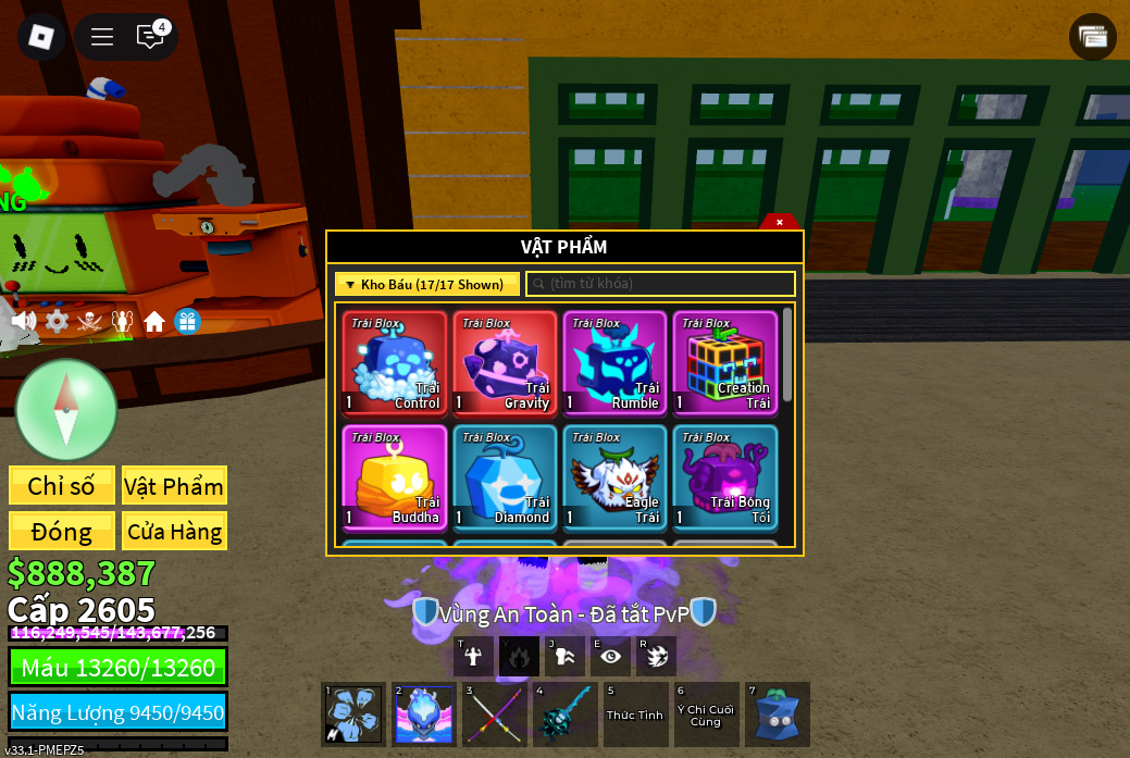 Trái ác quỷCó trong vật phẩm,Trái ác quỷ vĩnh viễn,Trái Control,Trái Gravity,trái rumble,trái creation Tường