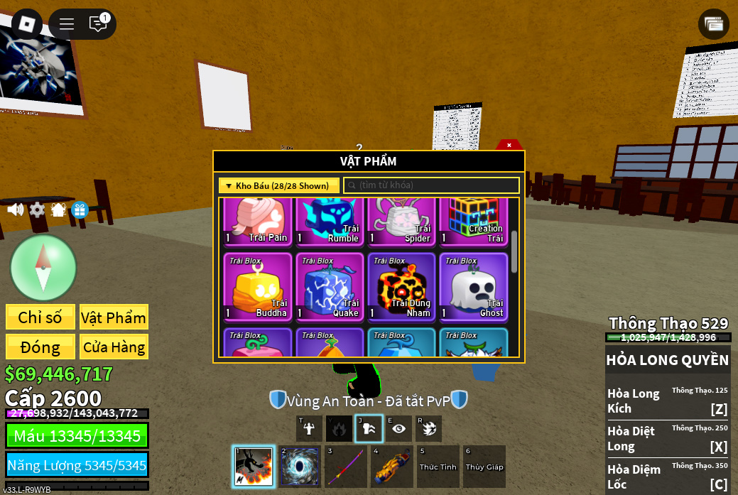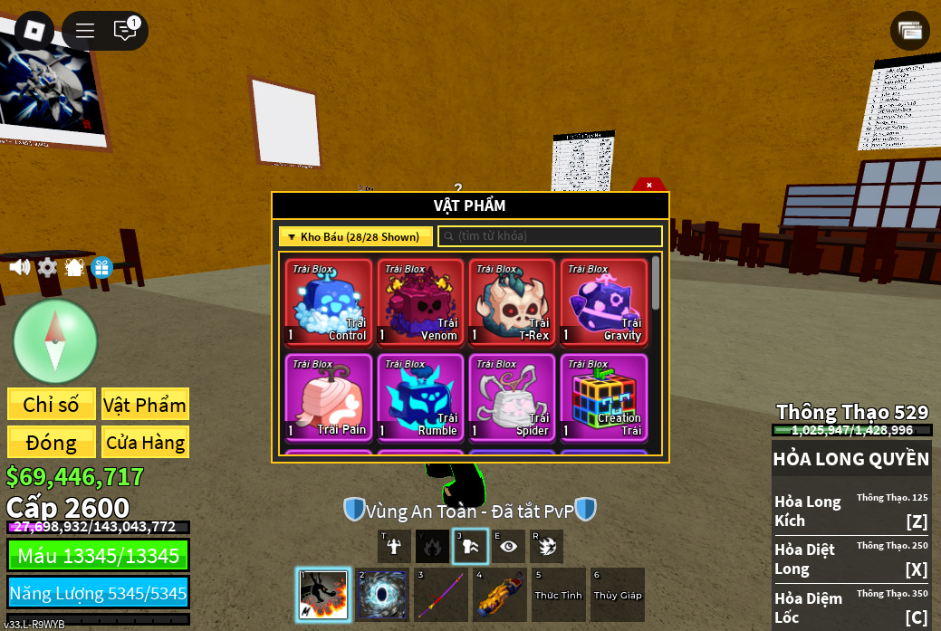 Trái ác quỷCó trong vật phẩm,Trái Venom,Trái Control,Trái Gravity,trái pain,trái rumble,trái creation Tường