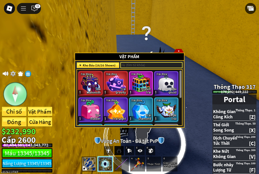 Trái ác quỷCó trong vật phẩm,Trái Mammoth,Trái Gravity,trái creation Tường