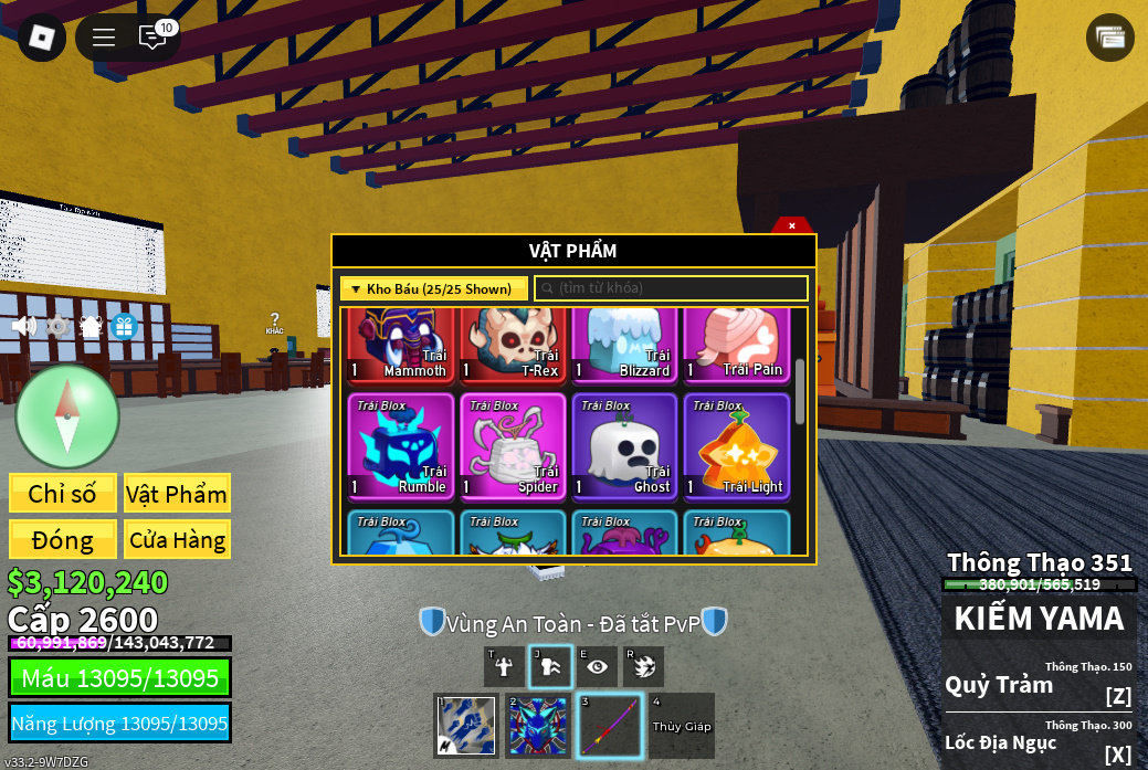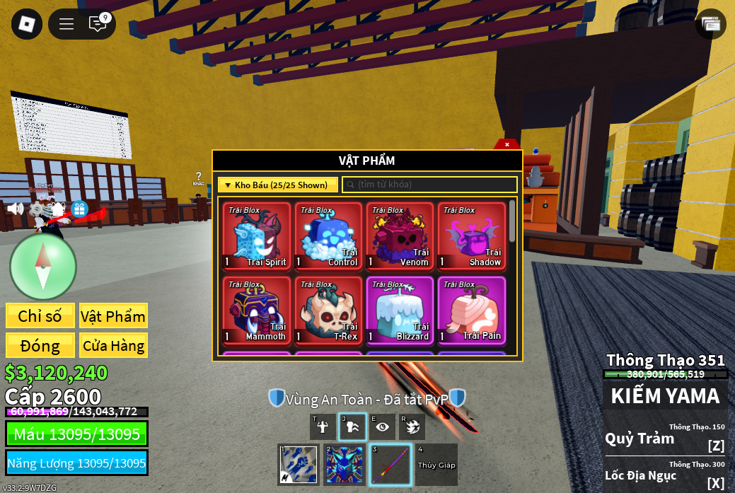 Trái ác quỷCó trong vật phẩm,Trái Mammoth,Trái Venom,Trái Control,Trái Shadow,Trái Spirit,Trái T-Rex