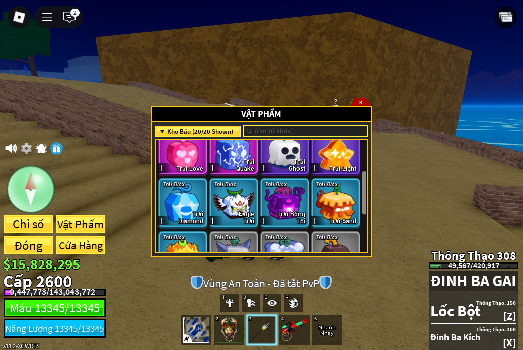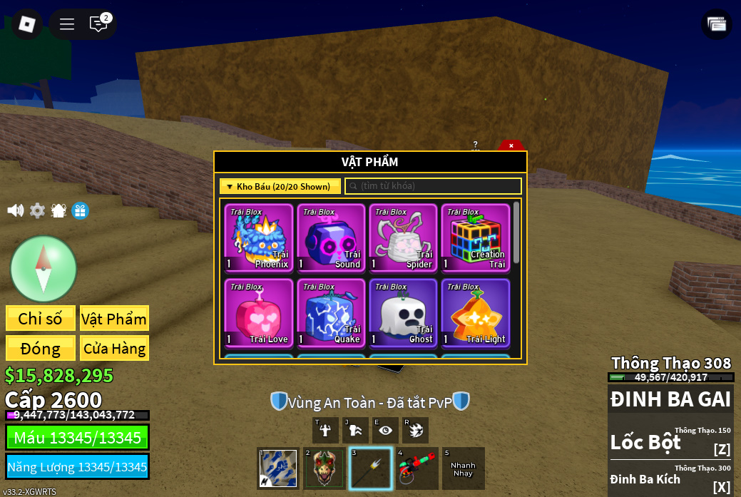 Trái ác quỷCó trong vật phẩm,Trái Sound,trái spirder,trái phoenix,trái creation Tường
