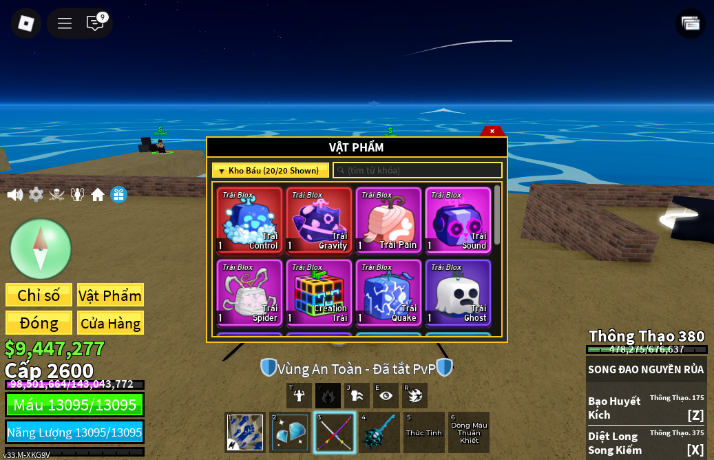 Trái ác quỷCó trong vật phẩm,Trái Control,Trái Gravity,Trái Quake,trái spirder,trái creation Tường